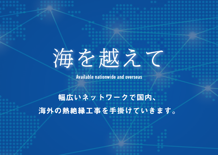 熱エネルギーを無駄なく利用するための熱絶縁工事、主に発電プラント・焼却場・船舶・火葬場施設等における保温・保冷・防音・耐火・板金工事等、国内・海外問わず、グローバルに展開しています。基礎となるのは、必要な資格のほとんどを取得している、社員がもつ技術力です。年に数回は東南アジア等に出張、現地作業員の指導を行っております。地球温暖化対策に熱心なシンガポールでは、バイオマス発電装置の建設現場で、機器の耐火工事、煙道の保温・板金の技術指導を行い、高い評価をいただいております。