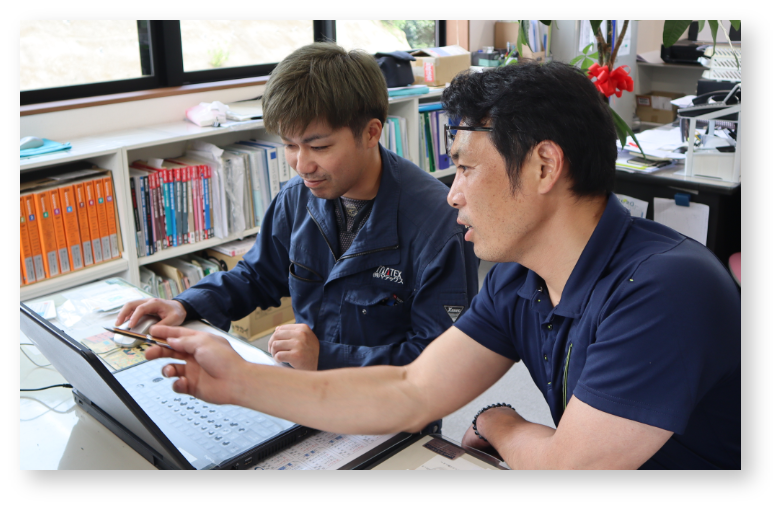 経験、年齢に関わらず全ての従業員が互いへの信頼や協調性を持ち、工事を円滑に進めていきます。